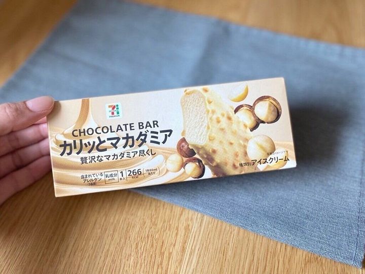 セブンプレミアムから登場した新作アイス「チョコレートバーカリッとマカダミア」は、想像以上にマカダミアの香ばしさと濃厚な味わいを楽しめるアイスでした。近くのコンビニでこんなにも贅沢感のあるアイスが食べられるのは驚き。コンビニアイスは年々クオリティが上がっているので目が離せませんね。