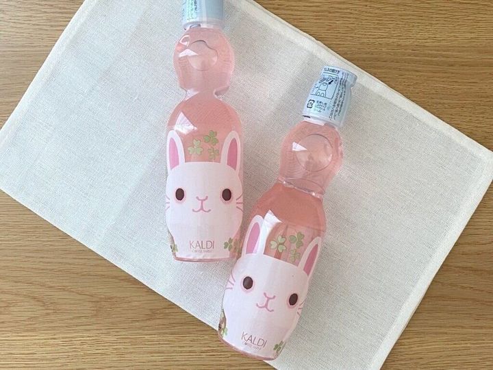 昔懐かしい瓶入りラムネの白桃フレーバー。瓶風のプラスチック容器に入っています。今回のパッケージはうさぎですが、くま、ねこ、雪だるまなど、毎回かわいいデザインの物が登場しています。