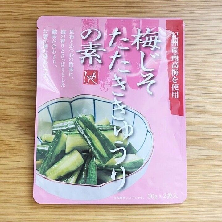 ややトロミのあるテクスチャーの調味液がきゅうりによく絡み、即席とは思えない程しっかりとした味わい。昆布やかつおのだしの旨味に梅の香りと酸味がよく合っています。きゅうりのポリポリ食感とまろやかな酸味がやみつきになる1品です。