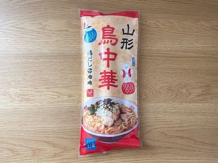 山形のご当地ラーメン「鳥中華」を再現したインスタントラーメンです。ストレートの中華麺と、醤油ベースのスープがセットになって2食分入っています。