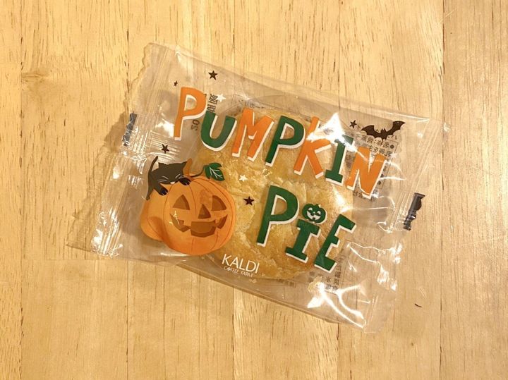 ハロウィンデザインのパッケージに入った、国産のかぼちゃを使用したパイ。