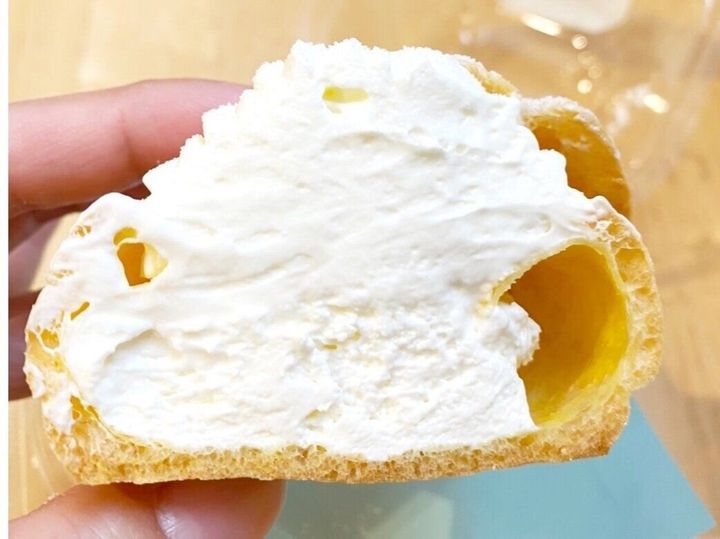軽い食感のシュー生地の天面には粉糖がまぶされています。