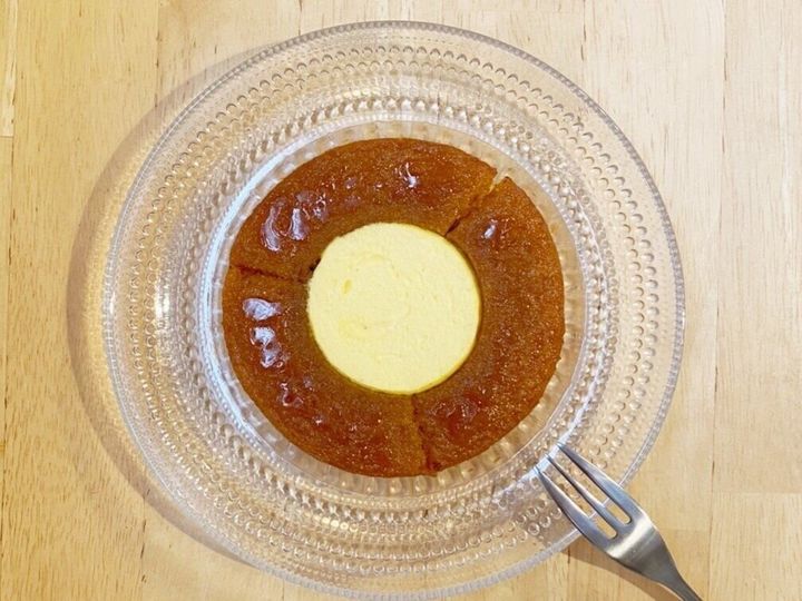 キャラメルが染み込んだバウムクーヘンはスーっとフォークが入っていく柔らかさ。