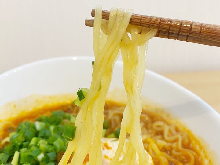 韓国ラーメンの中でも麺の弾力がダントツ強い!つるつるで喉越しのよい麺にハマる人も多いと思います。スープはコクがありながらもあっさりしていて、程よい辛さもありますがあとを引かないので、辛さが苦手な方もチャレンジしやすいですよ!
