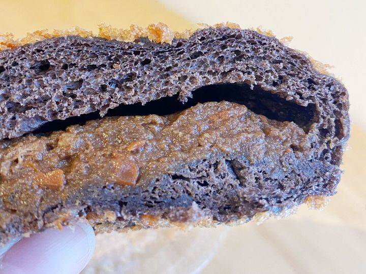パン生地は安価なカレーパンによくある油っこさや重さがなく、あっさり軽い食感です。ほんのり苦味があり、中のカレーとベストマッチ〜◎。