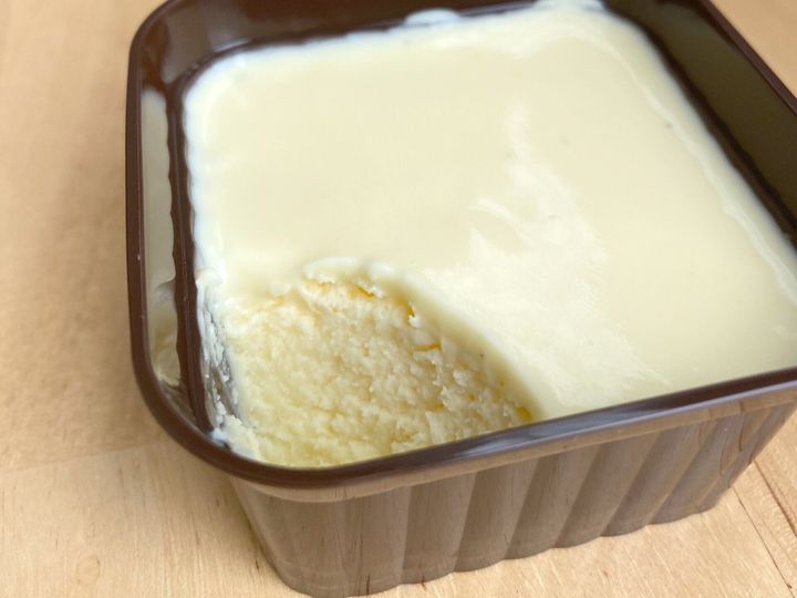 上層のバニラチーズソースはほんのり酸味があり甘さは控えめ。しっかりとバニラの風味も味わえます。下層のテリーヌは上層のソースより少し甘さがあり、濃厚なチーズの味わいを堪能できます。舌触りが非常になめらかで口の中でスーッと消えていき少し余韻が残る、贅沢な味わいのスイーツです。