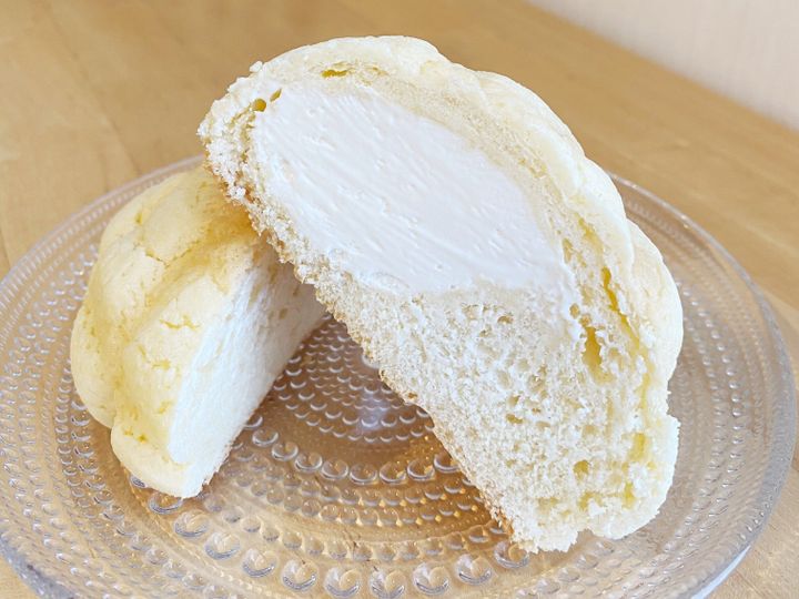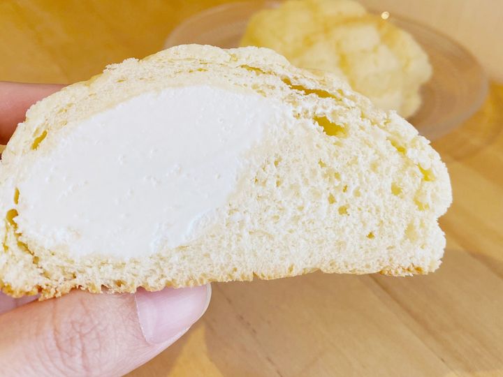 冷たさはほんのり残っていて、パン生地はふわふわでクリームはとろ〜ん!表面のクッキー生地とクリームの甘さと、パン生地の素朴な味わいがベストマッチ。