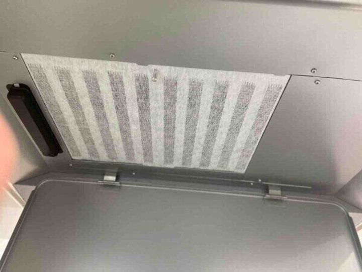 シロッコファンなどの部品をしっかり乾かしてから戻して、最後にフィルターをつけてお終いです。フィルターを付けることで、換気扇の内部が汚れにくく、次回のお掃除も楽になります。