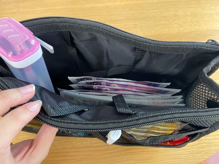 ポケットがたくさん付いているので、物の定位置を決めてすっきりと収納することが出来ます。筆者は出産を控えていたので、入院中に使用するものを収納してみました。