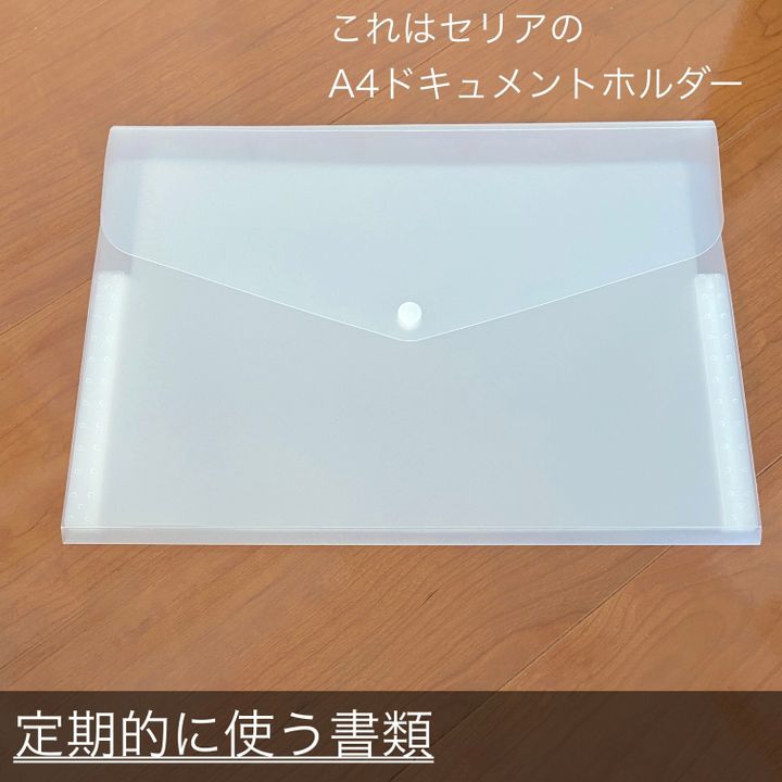 私は中身もさらに分類分けできるクリアファイルを使っていますが、ここはお好みでもいいかと思います。ハンギングホルダーはセリアや無印などでも販売しているので気軽に購入できるのがいいですね。