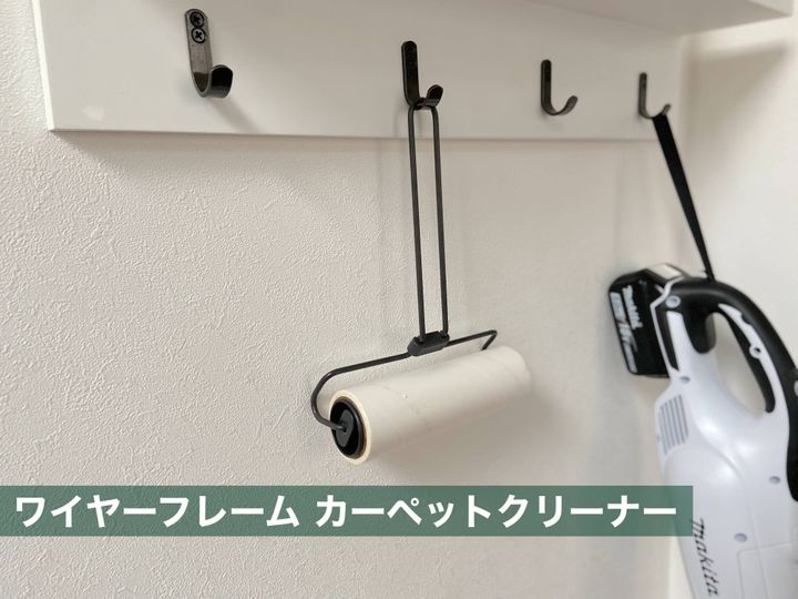 一時期SNSでも話題になっていたカーペットクリーナー。ワイヤーが壁などに付かない構造になっているので、ケースなしでもフックに掛けるだけですっきり収納することが出来ます。