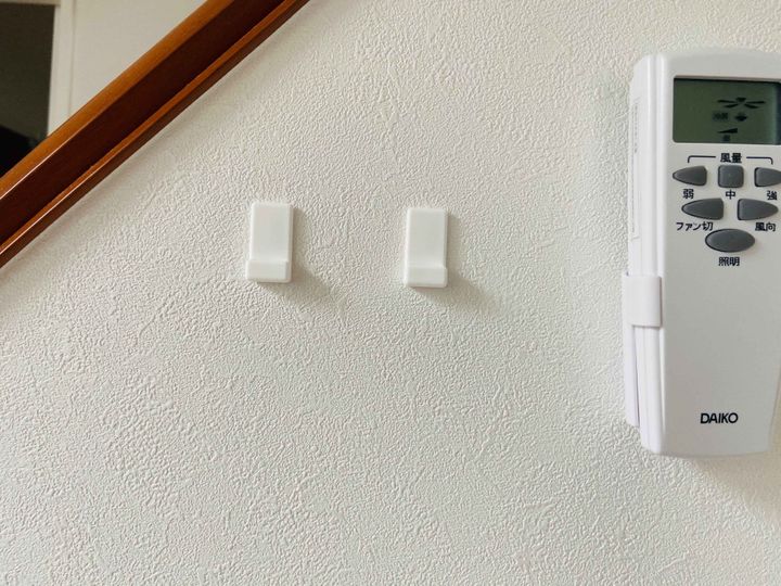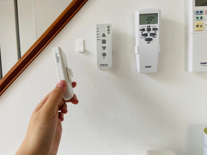 引っ掛け式なので取り外しもしやすく、家族みんなが使ったらきちんと元に戻すことができます。我が家ではエアコンなどのリモコンをLDKの中央にまとめることで、動線的にも使いやすくなりました。