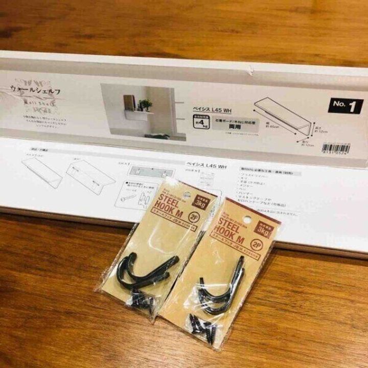 ウォールシェルフのサイズにもよりますが、耐荷重も2.5㎏~6.5kgなのでよほど重たいカバンをかけなければ大丈夫です。