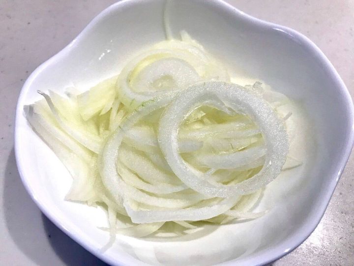 最初に玉ねぎを切って置いておくことで他の調理工程をこなしているうちに時間が経ち、いざ玉ねぎを使用するタイミングにはいい感じに玉ねぎが仕上がっています。