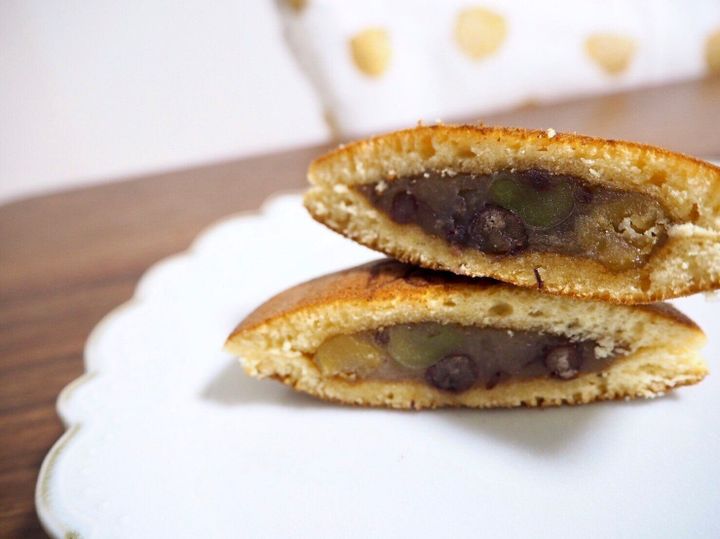 食べたことのない方に説明するのであれば・・・どらやき生地に甘さ控えめの甘納豆と白あんが入っている感じです。