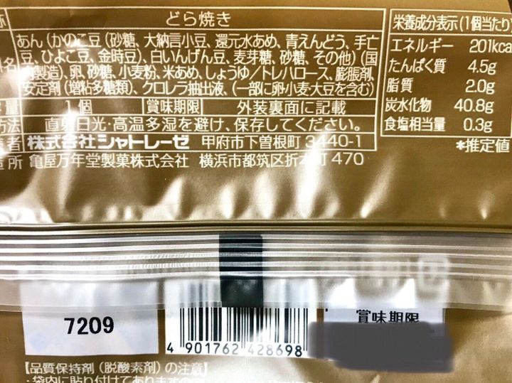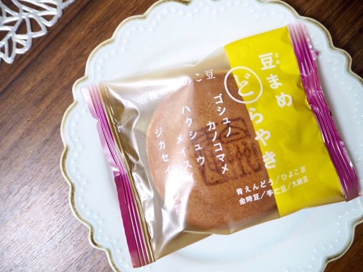 シャトレーゼにて、なんと大好きなどらやきの中に豆が入っている商品を発見しましたので早速購入しました。