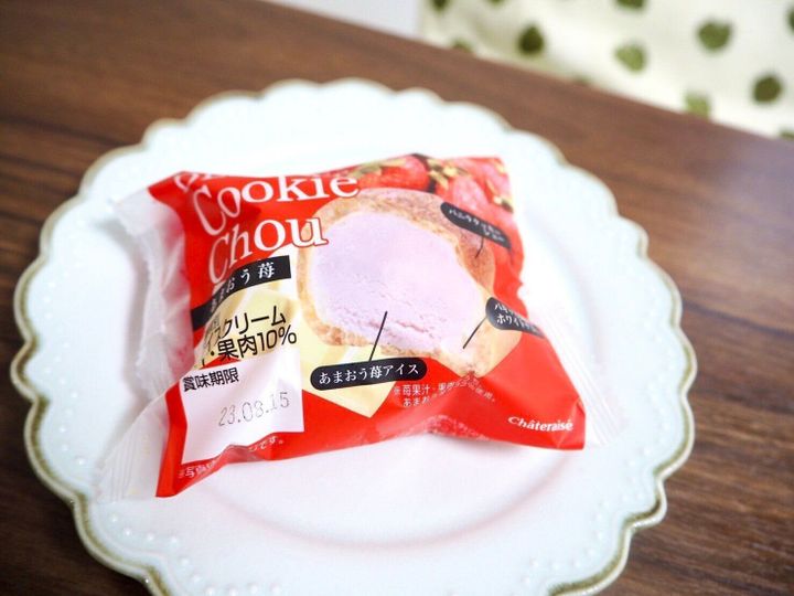 シャトレーゼには何種類かのデザートクッキーシューアイスがありますが、その中でもオススメなのがあまおう苺。