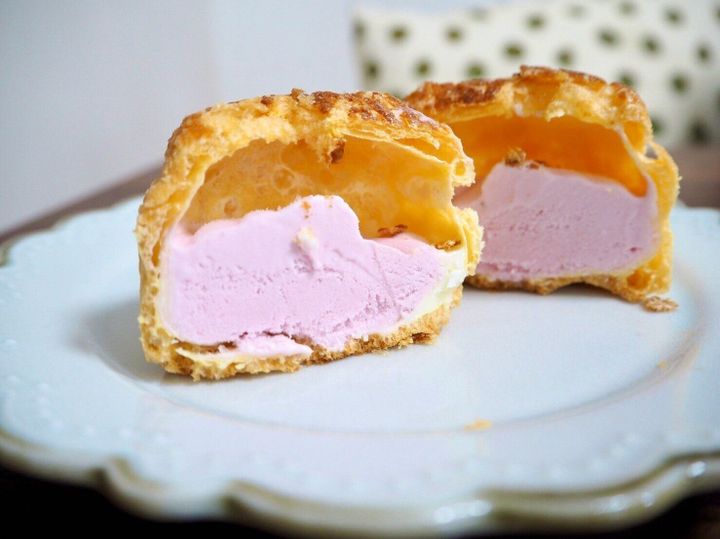 シュー生地とアイスの隙間をよく見ると白くなっている部分がありますが、こちらはホワイトチョコ。