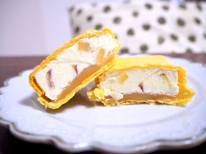 スイートポテト味は、スイートポテト餡のねっとり、アイスの中のさつまいもダイスのごろごろ・・・ひとくちで色んな食感を楽しむことができます。