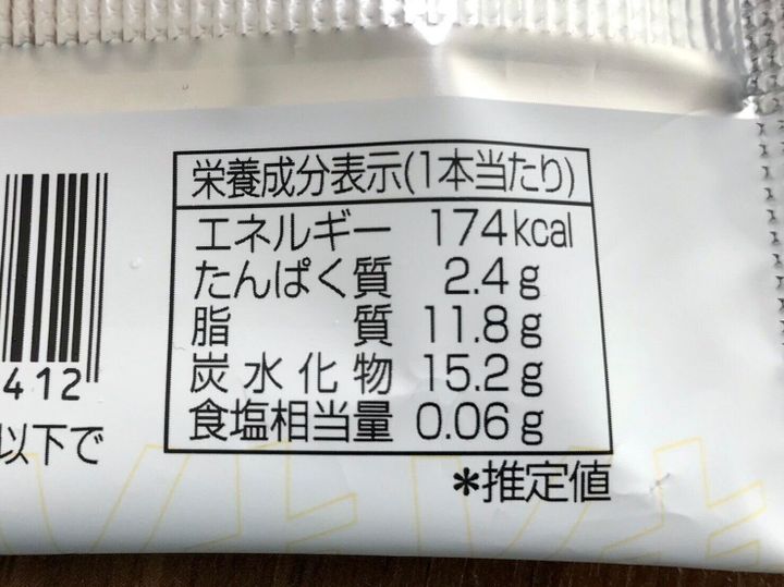 チョコバッキーは1本あたり158kcal、リッチチョコバッキーは174kcalとリッチな分カロリーも少しお高めですが、このリッチ感に納得の高カロリーです。