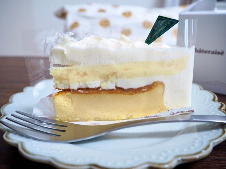 実際には、どの部分も個性的なのにケンカしておらず、クリーミーなレアチーズクリーム、ふわふわ感のあるスフレ、ずっしり濃厚なベイクドチーズケーキを一度に楽しむことができます。