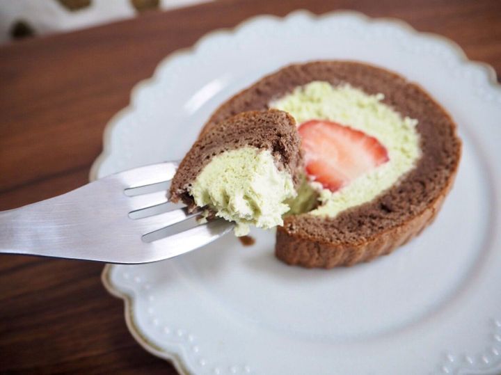 苺とピスタチオのふんわりロール