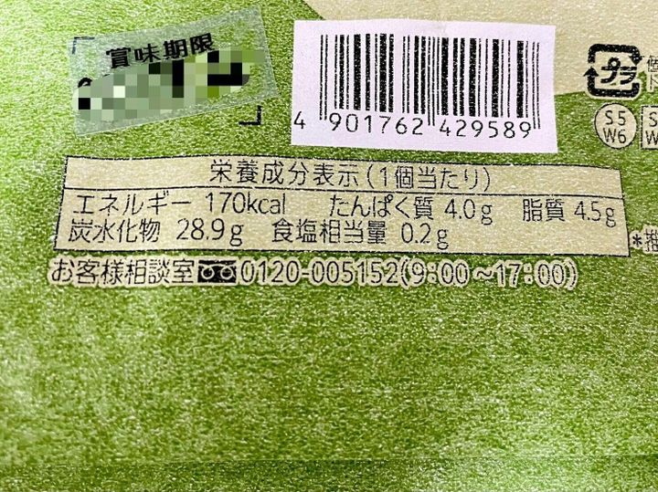 宇治抹茶あずきの栄養成分はこちらです。