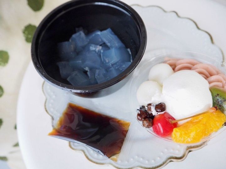カップは二段になっており、下の段には寒天と黒蜜が入っています。