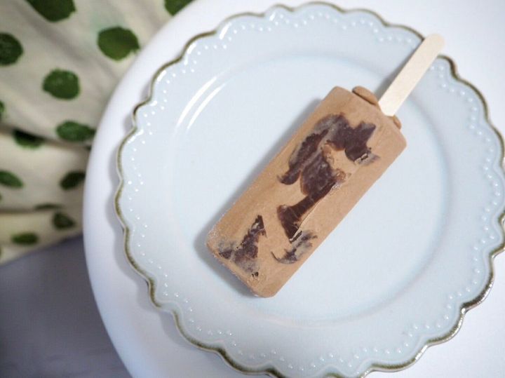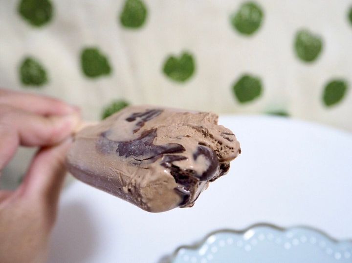袋から取り出してみると、淡い茶色のボディに、濃い色のチョコレートがまだらに入ったバーアイスがお目見えです。