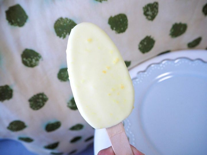 コーティングのホワイトチョコにはレモンチップが混ざっており、ぱきっとした歯ごたえとともに、レモンの爽やかな甘みがくちいっぱいに広がります。