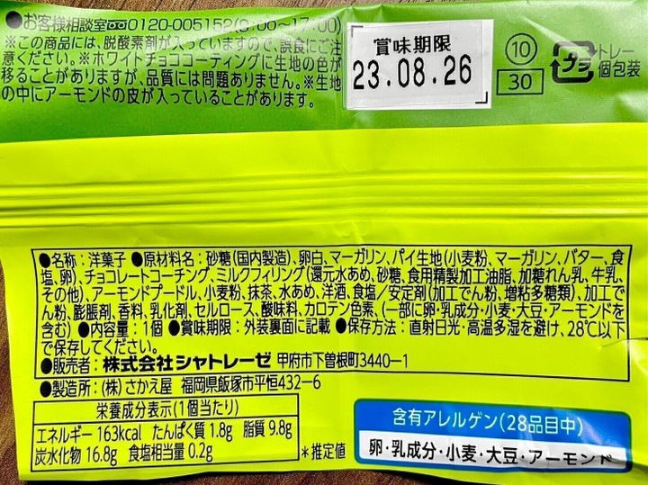 シャトレーゼでは以前からフリアンショコラサンドパイという焼き菓子が販売されておりますが、新フレーバーの「八女抹茶」が登場しました。