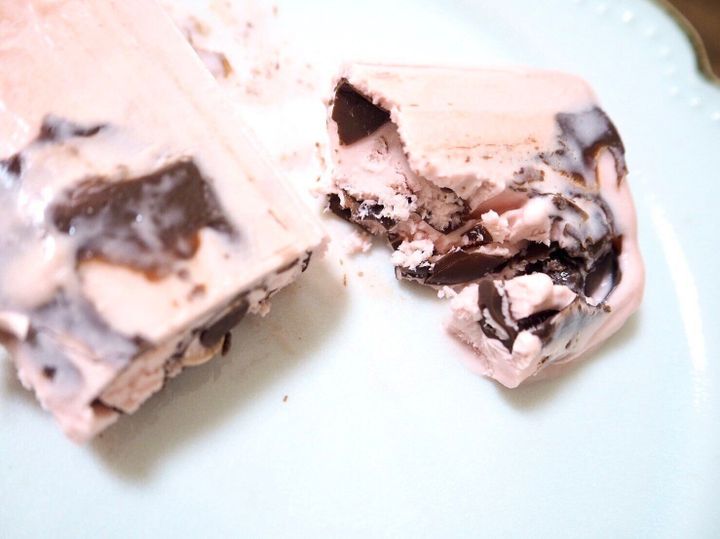 チョコが多くて、食べる場所によってはいちごのアイスというより板チョコを食べている感覚です。