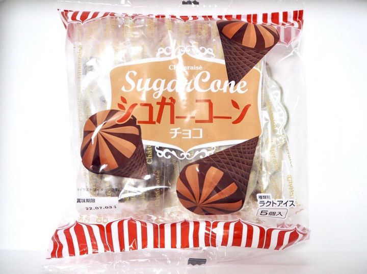 チョコとバニラの2種類を展開しているシュガーコーン。おいしいのに低価格なところが魅力的で、我が家の冷凍庫に常備されています。