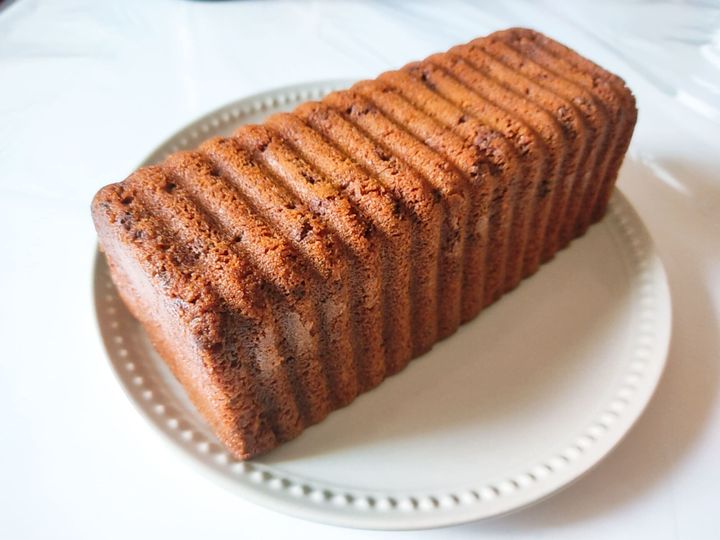 銀の袋を開けると、波模様がきれいなケーキがでてきました。ラム酒の強い香りが広がります。大きさは、縦5.5㎝×横16㎝×高さ4.5㎝。ずっしり重みがあります。