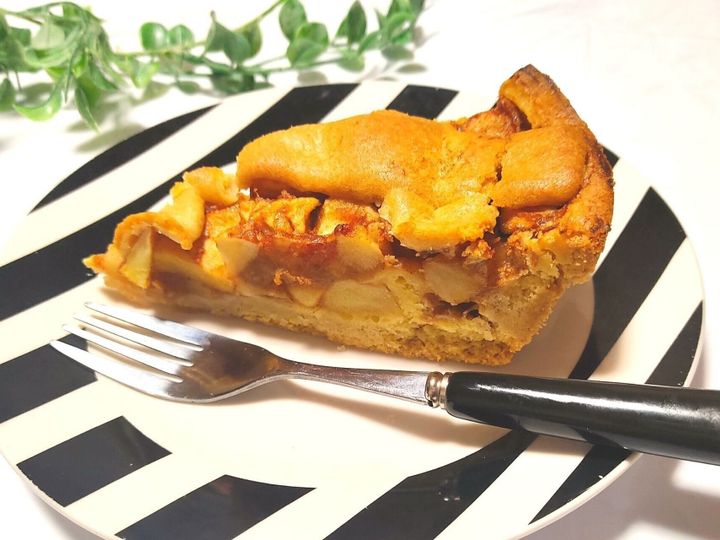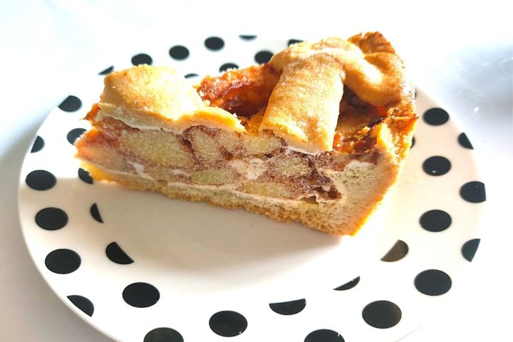シナモンとリンゴの香りが広がります。表面のパイ生地はサクッと、下の生地はしっとりしています。大きくカットされたリンゴは、シャリっと食感!程よいシナモンとあんずジャムの甘みで、ほっこりする美味しさです。