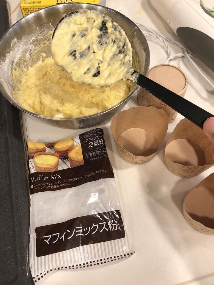 5才の娘と、セリアの粉を使ってマフィンを作りました。