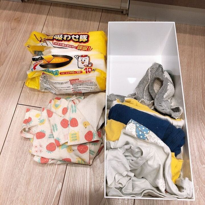 お鍋に、布を入れて吸収して、ポイっとすてます。
