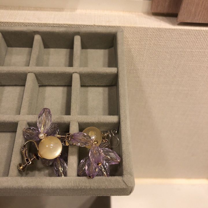 ヘアクリップや、長いピアスは、時計用のトレイに収納。