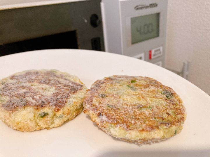 解凍方法は、レンジ、フライパン、揚げる、の3つ。今回は、手軽にレンジで解凍してみました。