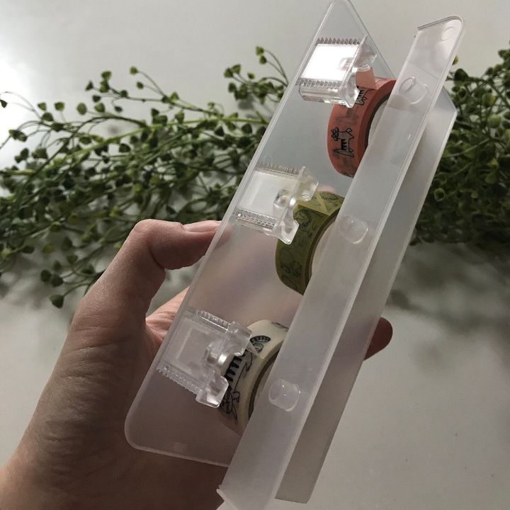 パカっと開くことができ、マスキングテープを3個収納できるようになっています。