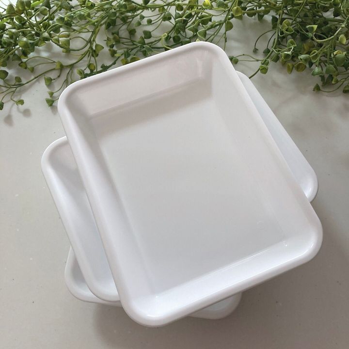 真っ白でシンプルなお料理バッド。3枚セットで消費税込み110円は嬉しいですね。