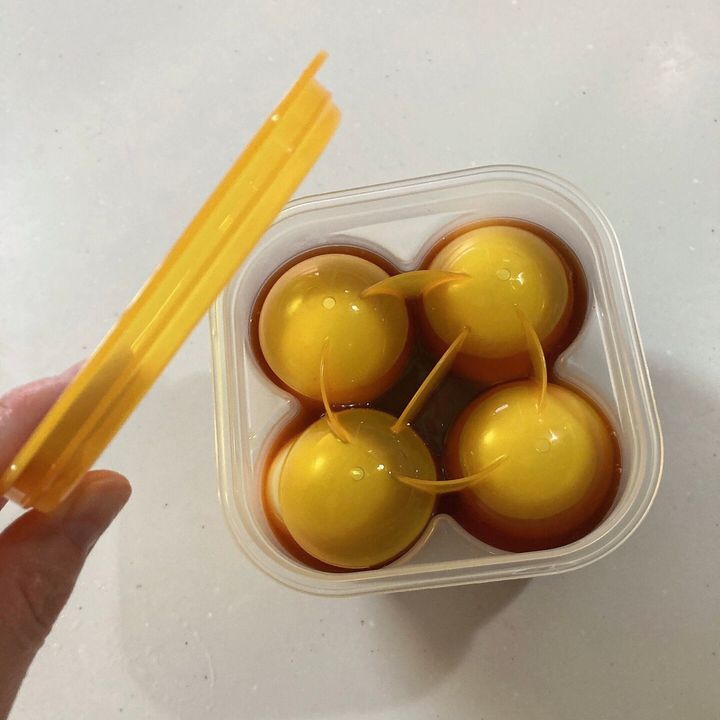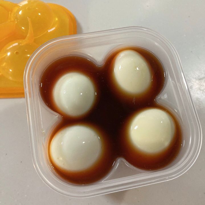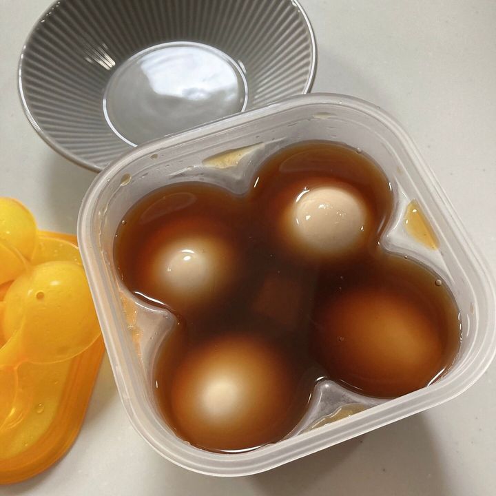 前日の夜に仕込んだら朝にはこの通り、いい感じの味玉が完成しています。