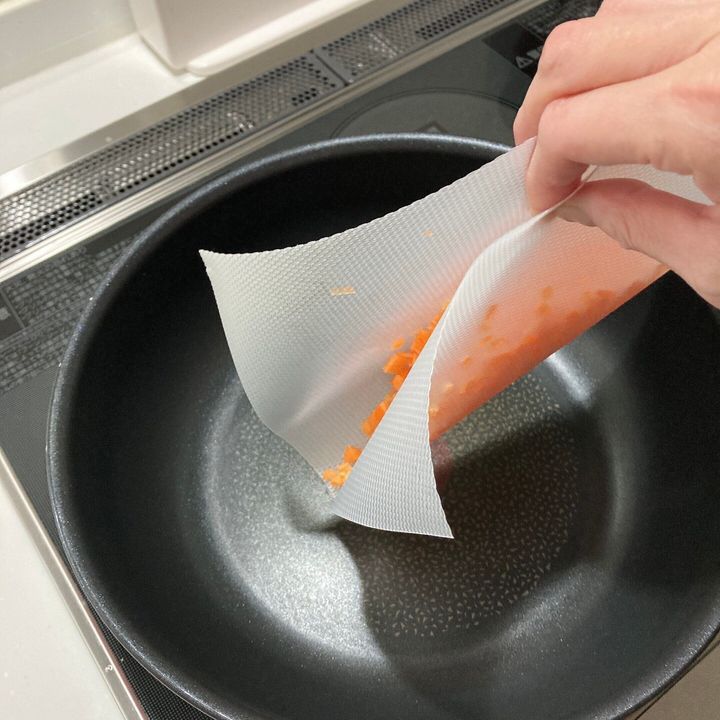 丈夫で柔らかいシートなのでフライパンに移し替えるのにも便利!