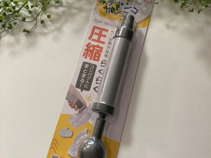 手で潰すには力がいり大変ですが、このペチャンコポンプを使えば簡単に圧縮できるのでおすすめです。