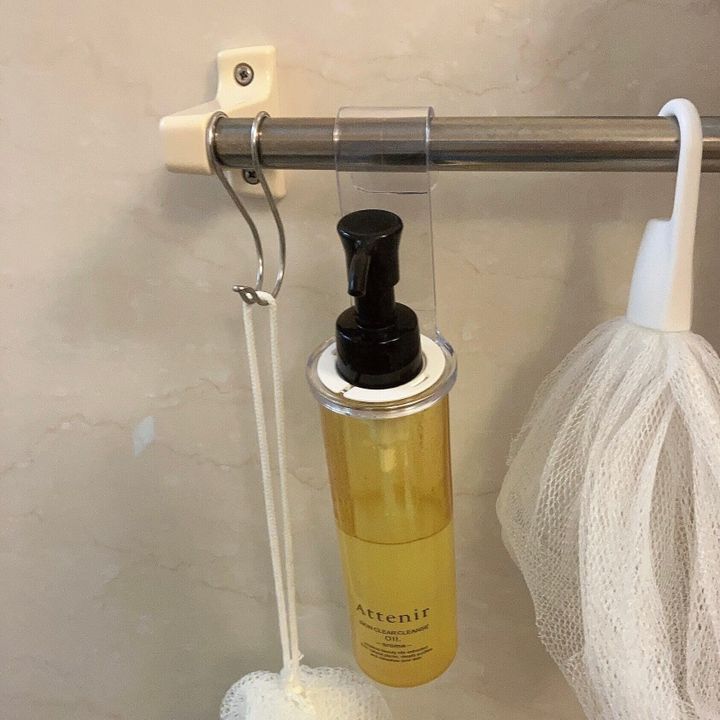 タオルバーにかけることができる吊り下げ式のボトルホルダーです。