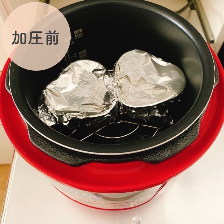 5.加圧が終わり、圧力表示ピンが下がったら取り出す。