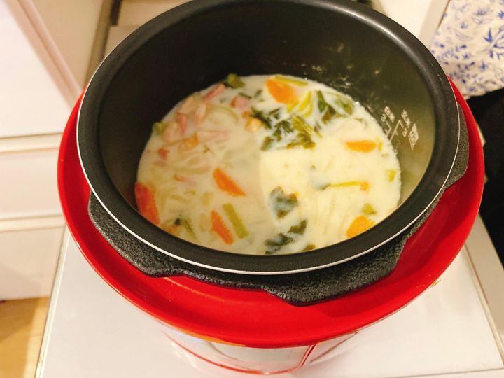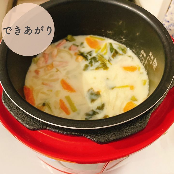 1.豆乳と塩こしょう意外の材料をすべて内なべに入れる。