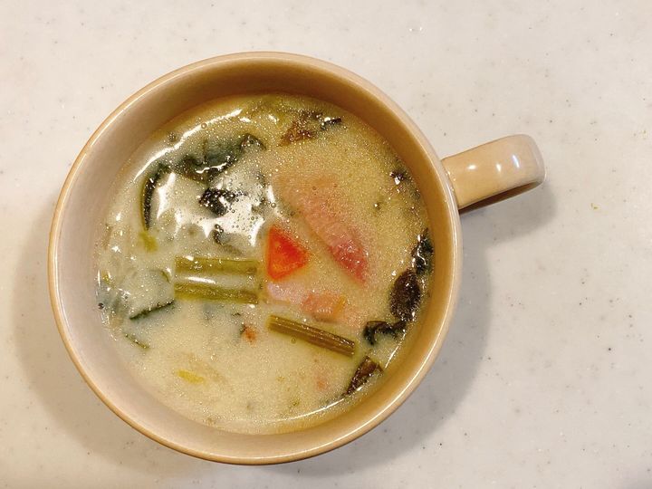今回は小松菜とベーコンの豆乳スープをご紹介します。