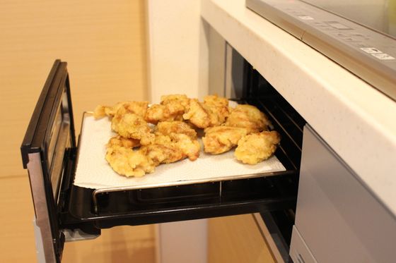 わざわざバットを準備する手間も省け、コンロに付属してあるで料理の動線も良く、効率よく揚げ物ができます。