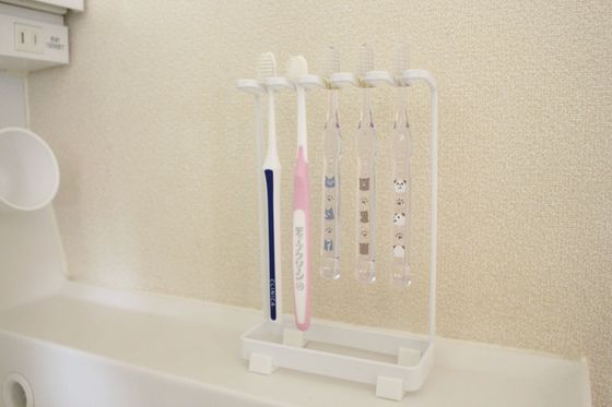 浮かせて引っ掛けられるのでお手入れも簡単。わが家は5人家族なのですが、これまでなかなか歯ブラシをピッタリ収納できる商品が無かったので、これを見つけた時には嬉しくて、すぐさま購入!笑